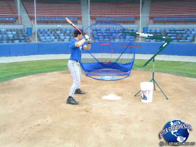 Set-up the slo-toss machine approximately 3 to 4 feet away from the hitter. Press the push-bar at the top of the machine and get ready to swing. ...